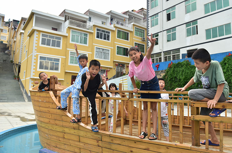 2019年8月22日,福建省福安市下岐村小朋友在下岐漁民廣場前玩耍。新華社記者 林善傳 攝