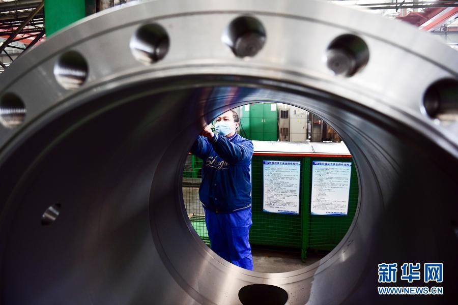 2020年2月10日,沈陽鼓風(fēng)機集團股份有限公司工人在生產(chǎn)線上工作。新華社發(fā)(沈鼓集團提供)
