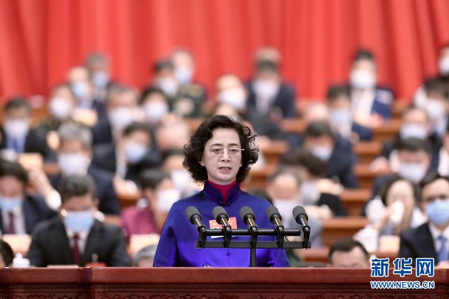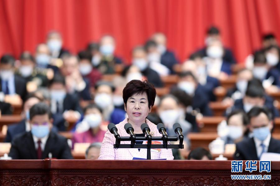 3月7日,全國(guó)政協(xié)十三屆四次會(huì)議在北京人民大會(huì)堂舉行第二次全體會(huì)議。這是韋震玲委員作大會(huì)發(fā)言。新華社記者 丁海濤 攝
