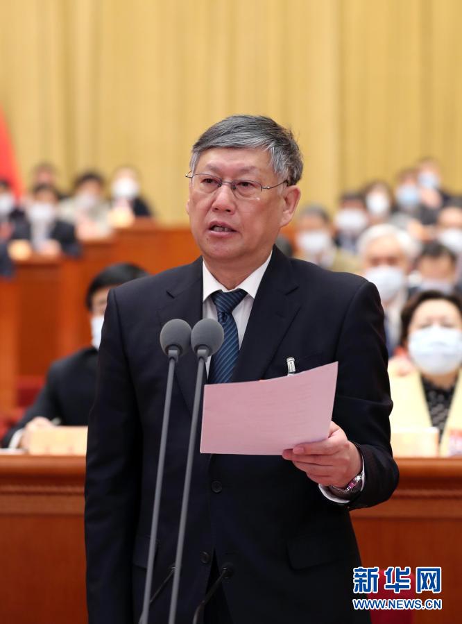 3月7日,全國(guó)政協(xié)十三屆四次會(huì)議在北京人民大會(huì)堂舉行第二次全體會(huì)議。這是吳國(guó)華委員代表臺(tái)盟中央作大會(huì)發(fā)言。新華社記者 丁海濤 攝