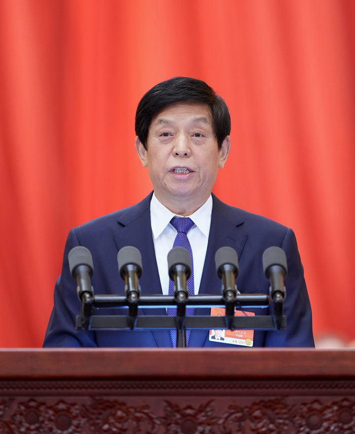 3月8日,全國(guó)人大常委會(huì)委員長(zhǎng)栗戰(zhàn)書向十三屆全國(guó)人大四次會(huì)議作《全國(guó)人民代表大會(huì)常務(wù)委員會(huì)工作報(bào)告》。新華社記者 劉彬 攝