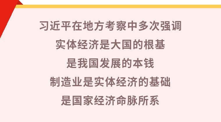 制造業(yè)是實體經濟的基礎,實體經濟是我國發(fā)展的本錢,是構筑未來發(fā)展戰(zhàn)略優(yōu)勢的重要支撐。要堅定推進產業(yè)轉型升級,加強自主創(chuàng)新,發(fā)展高端制造、智能制造,把我國制造業(yè)和實體經濟搞上去,推動我國經濟由量大轉向質強,扎扎實實實現(xiàn)“兩個一百年”奮斗目標。