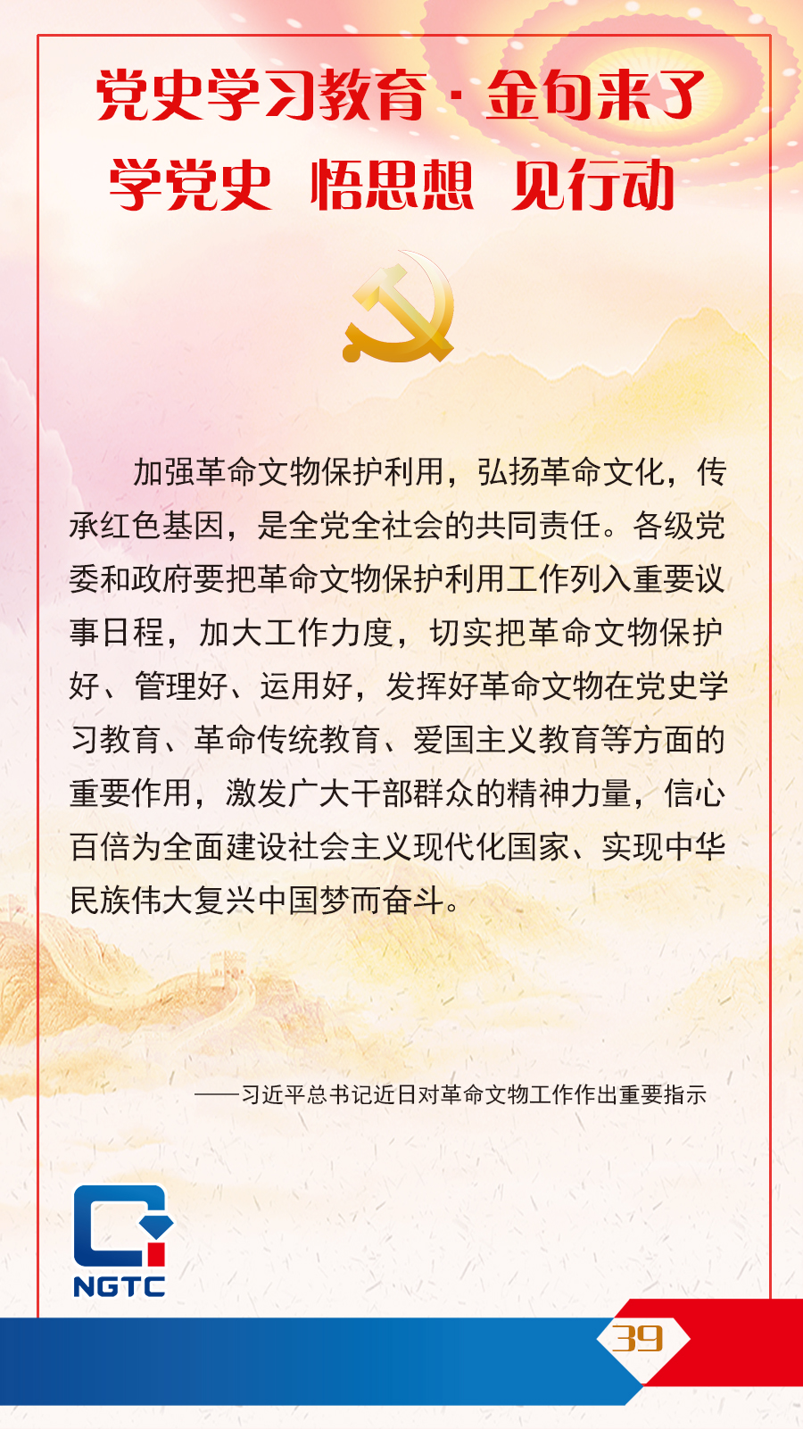 黨史學(xué)習(xí)教育·金句來了丨加強(qiáng)革命文物保護(hù)利用,弘揚(yáng)革命文化,傳承紅色基因,是全黨全社會(huì)的共同責(zé)任