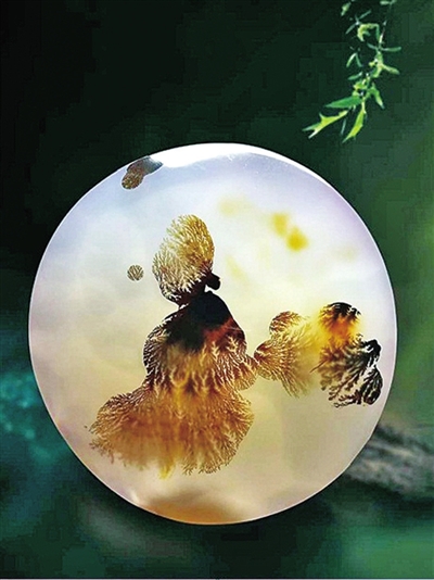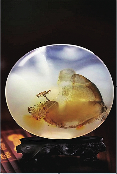 海洋玉髓因溫潤(rùn)、通透的質(zhì)地常用于打造珠寶首飾,也因豐富的色彩、花紋、圖案被廣泛用于奇石收藏。(薛潔 收藏)