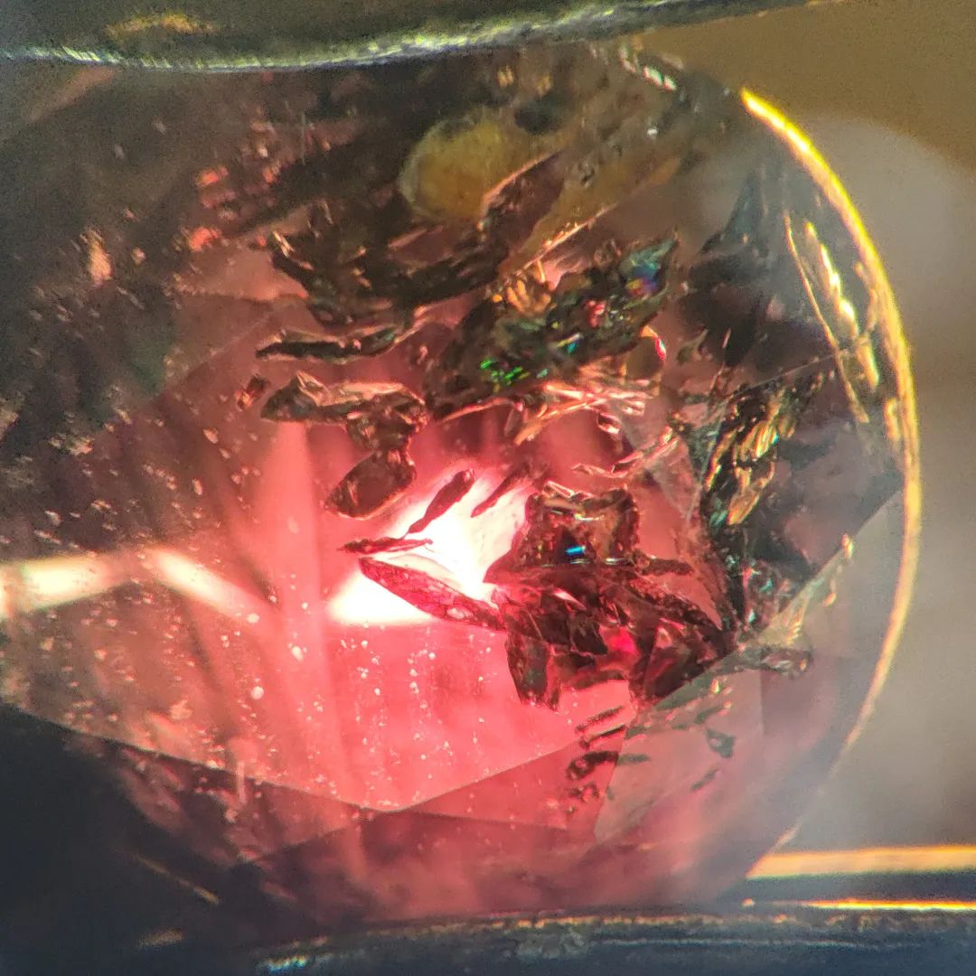 答:祖母綠是一種多裂的寶石,未經(jīng)充填的裂隙中空氣或水的干衍作用形成了“虹彩效應(yīng)”。