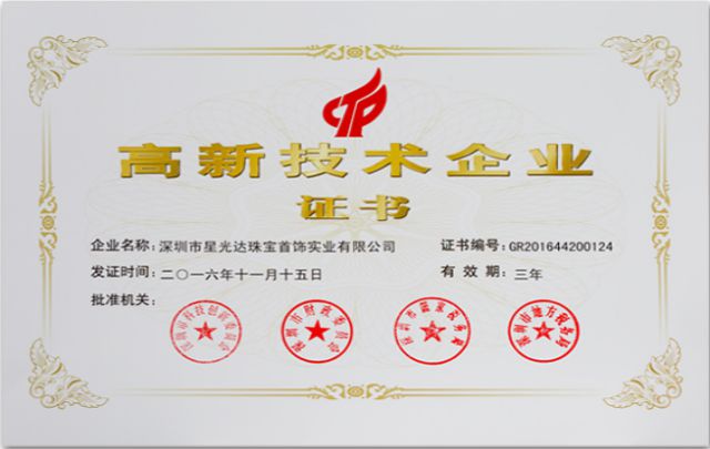 星光達(dá)珠寶不僅得到廣大合作伙伴的廣泛認(rèn)可,也受到了政府、協(xié)會(huì)及社會(huì)的綜合深度肯定,獲得了諸多榮譽(yù)與獎(jiǎng)項(xiàng):“中國(guó)珠寶鑲嵌第一家”、國(guó)家高新技術(shù)企業(yè)、全國(guó)百佳質(zhì)量誠(chéng)信標(biāo)桿示范企業(yè)、全國(guó)產(chǎn)品和服務(wù)質(zhì)量誠(chéng)信示范企業(yè)、“廣東省工業(yè)設(shè)計(jì)中心”“JNA年度創(chuàng)新-可持續(xù)發(fā)展企業(yè)大獎(jiǎng)”“JNA年度制造商大獎(jiǎng)”等多項(xiàng)榮譽(yù)。