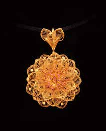 先帶大家了解花絲工藝?;ńz工藝是將金屬加工成絲,再經(jīng)盤曲、掐花、填絲、堆壘等手段制作首飾的細(xì)金工藝。根據(jù)裝飾部位的不同可制成不同紋樣的花絲、拱絲、竹節(jié)絲、麥穗絲等,制作方法可分掐、填、攢、焊、堆、壘、織、編等。