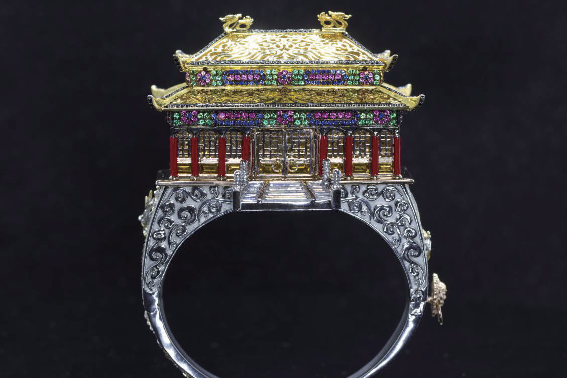 設計師運用建筑元素,規(guī)整的集合形加上修飾性的細節(jié),令首飾給人以體量感放大的視覺效果。