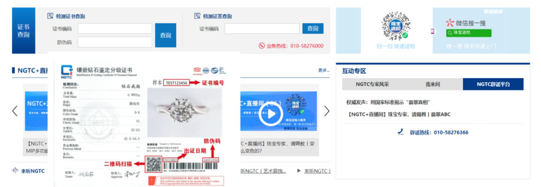 珠寶國檢(NGTC)官網(wǎng)(m.szdijie.com)證書查詢專欄截圖