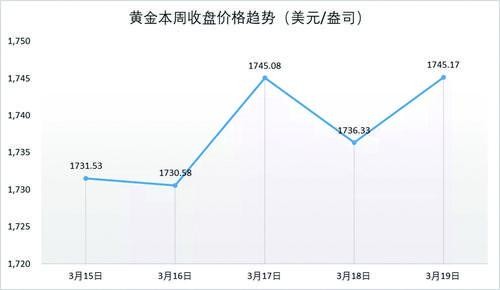 黃金一周收盤價格趨勢(美元/盎司)