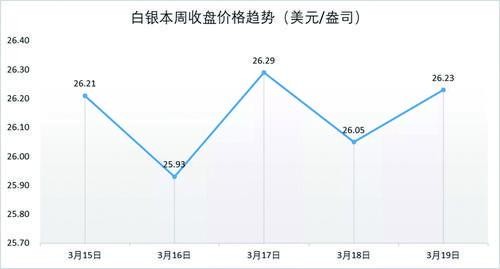 白銀一周收盤價格趨勢(美元/盎司)