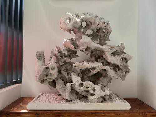 另外,安徽太湖石產(chǎn)于安慶、宣城廣德一帶山區(qū),也是開發(fā)時間較早的太湖石。近幾十年來,廣西桂平、忻城、柳江、都安、馬山等地也發(fā)現(xiàn)有太湖石賦存。目前,市場上甚至有越南太湖石銷售。上述太湖石產(chǎn)地因大多處于淮河以南,大致可以稱為南太湖石,還包括湖北荊山、云南曲靖、湖南湘西、貴州黔南、安徽巢湖等地,其特征稍有差別。北太湖石則主要產(chǎn)自山東、北京一帶,也是古代就有開發(fā)的品種,山東主要有臨朐、費(fèi)縣、淄博等地,北京太湖石主要產(chǎn)在房山周口店地區(qū)。北太湖石一般體量較大,造型渾厚雄壯,質(zhì)地較為粗松,不如南太湖石清秀玲瓏,但陰陽面特征也不像南太湖石那么明顯。北太湖石產(chǎn)地還有河北唐縣、河南安陽、南陽等地。