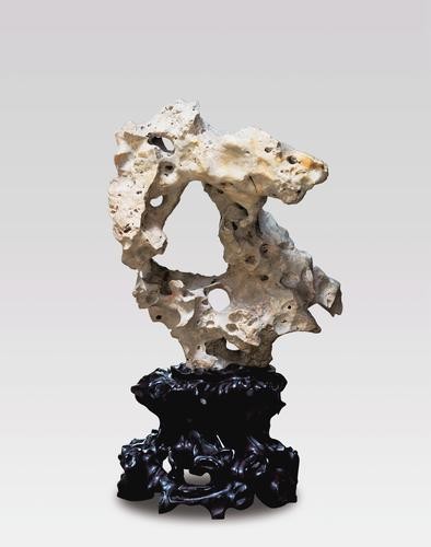 一般來說,太湖的水石比起旱石來,質(zhì)地更為清潤,硬度和密度更大,而且大多面面可觀,沒有明顯的陰陽面,數(shù)量非常稀少。其實,目前江南各處古典園林中的太湖石峰,包括著名的蘇州留園冠云峰等名石,都是旱石,有明顯的正反面,有的背部多有修治加工?!疤辈煌谝话愕乃瑑H指產(chǎn)于蘇州洞庭西山周邊太湖水域中的太湖石,質(zhì)地堅致硬朗,有的具有浮雕狀的硅質(zhì)巖結(jié)構(gòu),少見瘦皺漏透之姿,尤其是石表大多帶有水浪、魚鱗紋狀的肌理,變化多端。南宋詩人范成大《太湖石志》指出:“石生水中者艮歲久浸,波濤沖擊成嵌空。石面鱗鱗作靨名曰彈窩,亦水痕也??壑H然聲如磬。”旱石以產(chǎn)于蘇州洞庭西山、宜興一帶為佳,又以黿山和禹期山最為著名。太湖石一般形狀以大中型多見,小型供石少見,是中國古典園林中使用最多的石料,或單獨(dú)立峰,或疊為假山,具有很強(qiáng)的表現(xiàn)力,是古典賞石審美的突出代表,也是園林置石的首選石種。