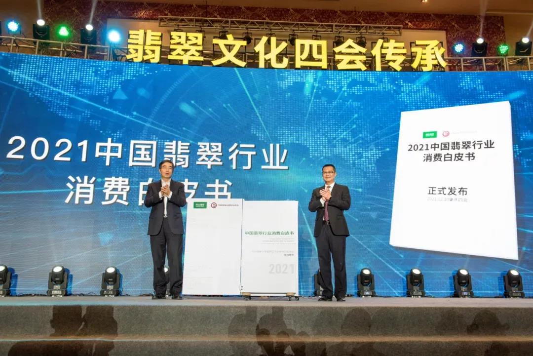 △珠寶國(guó)檢(NGTC)黨委書記、主任、中寶協(xié)會(huì)長(zhǎng)葉志斌,四會(huì)市委書記李偉忠共同發(fā)布《2021中國(guó)翡翠行業(yè)消費(fèi)白皮書》