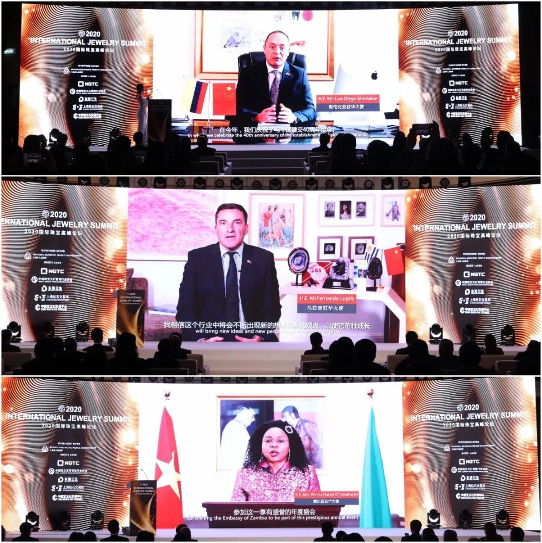 哥倫比亞駐華大使Luis Diego Monsalve、烏拉圭駐華大使Fernando Lugris、贊比亞駐華大使Winnie Natala Chibesakunda 通過(guò)視頻演講,表達(dá)了對(duì)第三屆進(jìn)博會(huì)及2020國(guó)際珠寶高峰論壇成功舉行的祝賀。