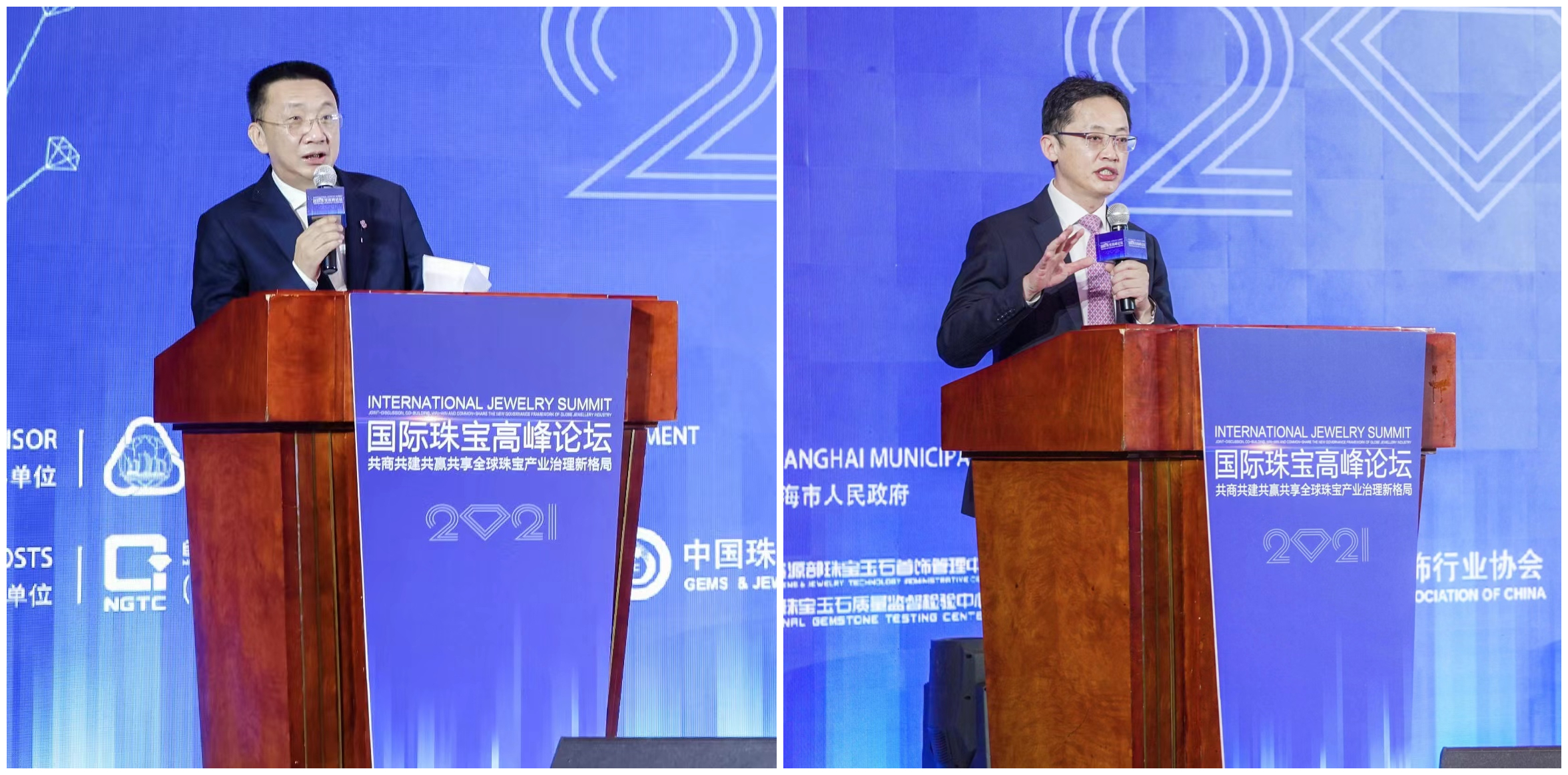 在高峰論壇上,珠寶國檢(NGTC)標準化部主任、全國珠寶玉石標準化技術委員會(SAC/TC298)秘書長、亞太珠寶標準化技術聯(lián)盟工作機制(AGA)秘書長、國際珠寶聯(lián)合會理事楊立信博士,中國寶玉石交易中心執(zhí)行副總裁陳昱分別圍繞國際標準化深度合作和寶玉石供應鏈可持續(xù)發(fā)展專題演講。