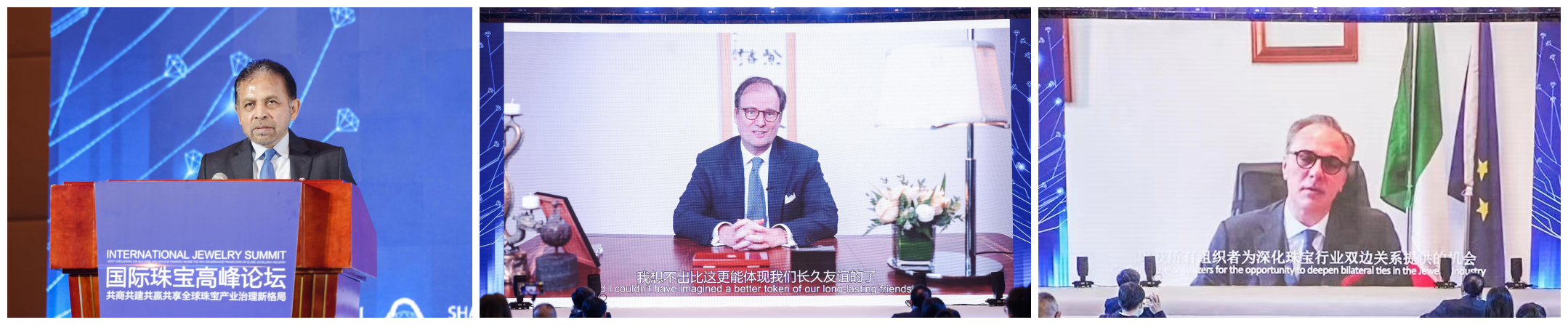 開幕式后,比利時駐華大使H.E.Jan Hoogmartens、意大利駐華大使H.E.Luca Ferrari、國際珠寶首飾聯(lián)合會(CIBJO)主席蓋塔諾·卡瓦列里(Gaetano Cavalieri)博士、東盟珠寶首飾協(xié)會(AGJA)主席陳蘇迪鵬(Suttipong Damrongsakul)、馬來西亞金匠協(xié)會顧問蕭德明(Ermin Siow)、緬甸珠寶協(xié)會副主席Aung博士等外賓則通過線上方式發(fā)表講話,參與交流。