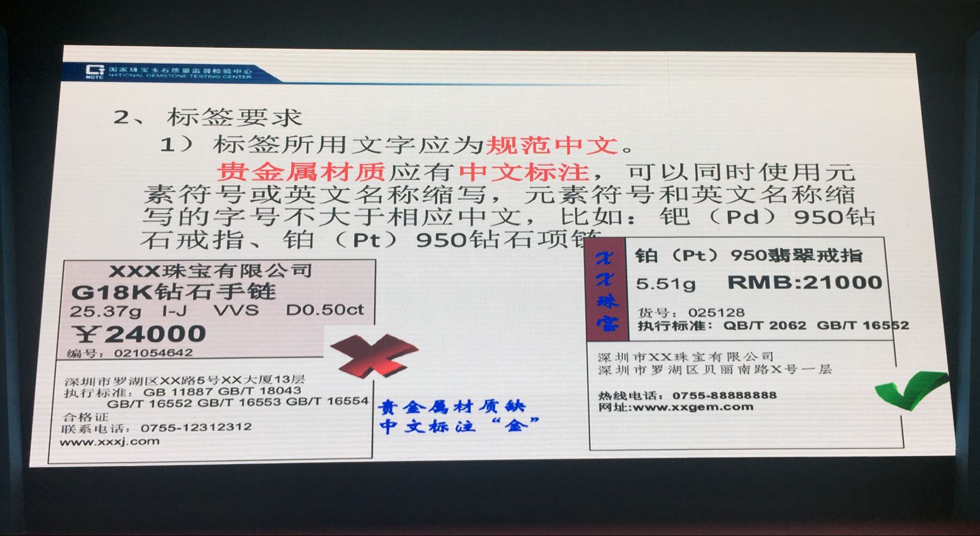 新國標(biāo)的正式出臺在規(guī)范市場的同時(shí)也為消費(fèi)者進(jìn)行對比查看提供了便利,修改后的貴金屬首飾標(biāo)簽只包括純度、材料、寶石名稱和首飾品種,分類清晰,一目了然。