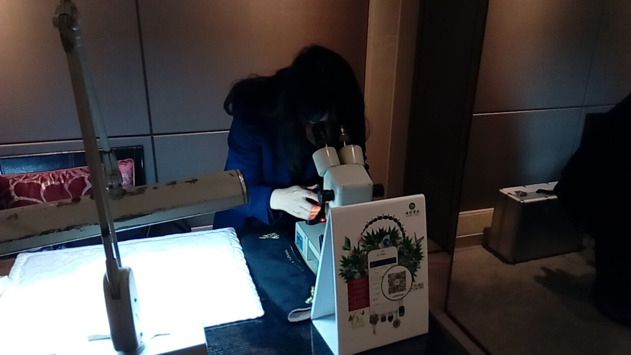 NGTC北京實(shí)驗(yàn)室高級(jí)工程師馮曉燕在競(jìng)拍會(huì)現(xiàn)場(chǎng)檢測(cè)