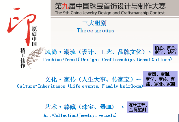“風(fēng)尚·潮流”組別與以鉑金、鉆石、黃金、彩寶為寶石原料,面向全球職業(yè)設(shè)計(jì)師、新銳設(shè)計(jì)師和素人設(shè)計(jì)師廣泛進(jìn)行創(chuàng)意設(shè)計(jì)征集;全面遴選精工巧匠進(jìn)行個人技能工藝比拼并選送優(yōu)秀工藝師參加世界技能大賽;精心代表性成品提煉中國品牌文化元素,全面打造中國珠寶文化升級版。