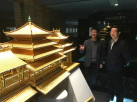 葉志斌同志(右)在廖創(chuàng)賓先生(左)的陪同下參觀潮宏基博物館