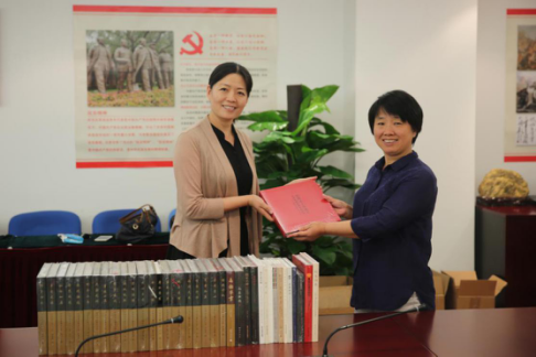 博觀拍賣總經理張海翔(左)向NGTC副主任柯捷(右)贈送書籍