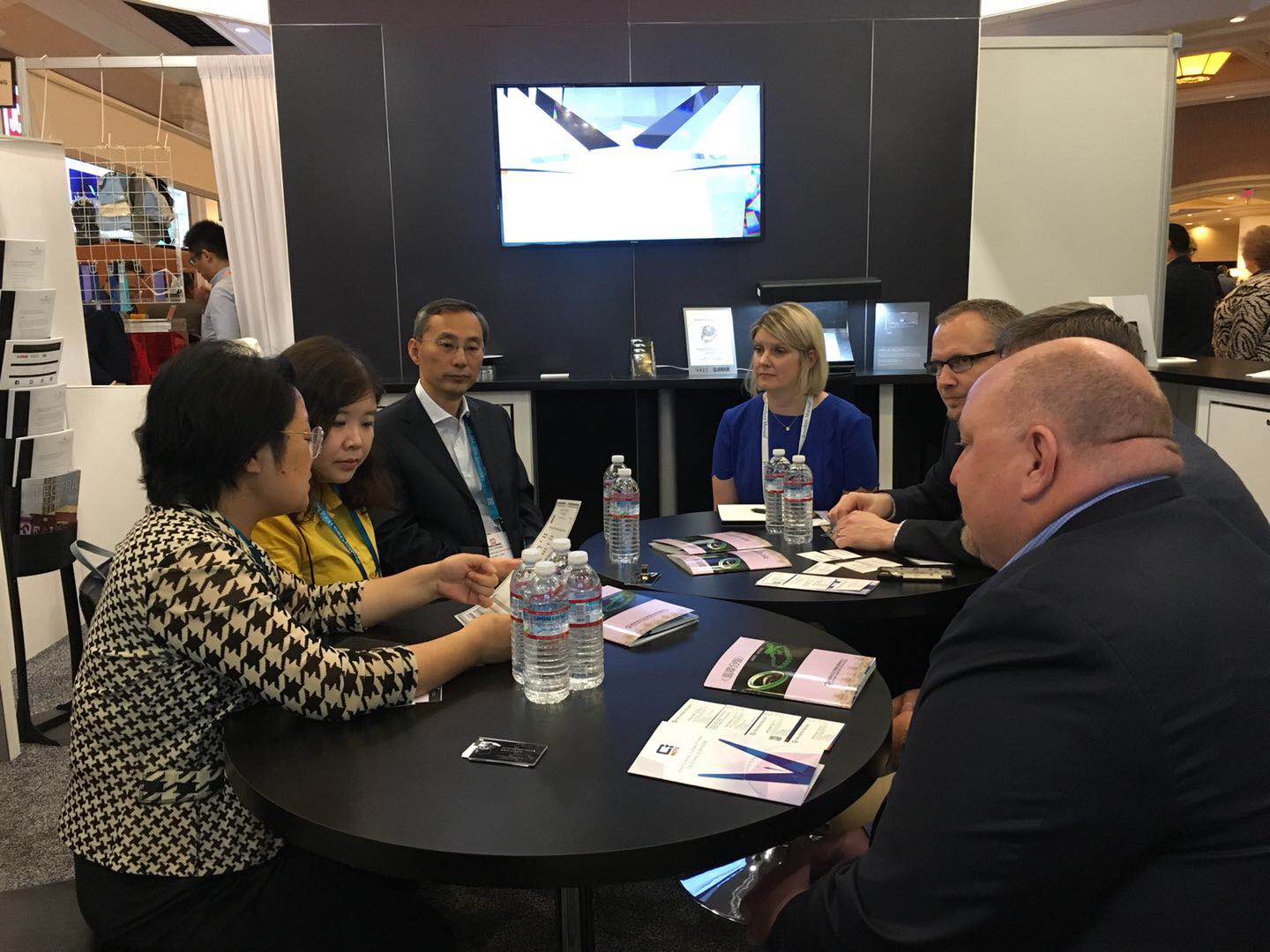 隨后,NGTC參訪團(tuán)與JCK主辦方勵(lì)展珠寶集團(tuán)(REED JEWELRY GROUP)副總裁KATIE DOMINESEY進(jìn)行了親切友好會談,張曉副主任表示,今年是NGTC首次派團(tuán)來到JCK展會考察,他向勵(lì)展珠寶集團(tuán)詳細(xì)介紹了NGTC在科技研發(fā)、標(biāo)準(zhǔn)制定、檢測鑒定、教育培訓(xùn)、宣傳推廣和國際交流六大版塊的綜合服務(wù),KATIE DOMINESEY副總裁介紹了JCK展的基本情況,并誠摯邀請NGTC今后能夠更多參與JCK展會。雙方均希望今后能在多個(gè)領(lǐng)域開展深入合作與交流。