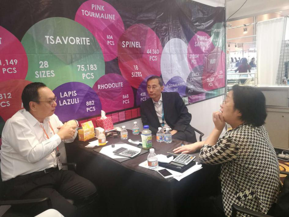 參觀展會期間,NGTC參訪團(tuán)按照計(jì)劃與國際珠寶首飾聯(lián)合會(CIBJO)主席GAETANO CAVALIERI、國際彩色寶石協(xié)會(ICA)會長BENJAMIN HACKMAN、CHINA STONE董事長李崇杰就國際珠寶市場概況、美國珠寶市場情況、彩色寶石的國家標(biāo)準(zhǔn)等進(jìn)行溝通交流,分享中國彩色寶石標(biāo)準(zhǔn)制定及實(shí)施情況,有效促進(jìn)了國內(nèi)外彩色寶石信息溝通。