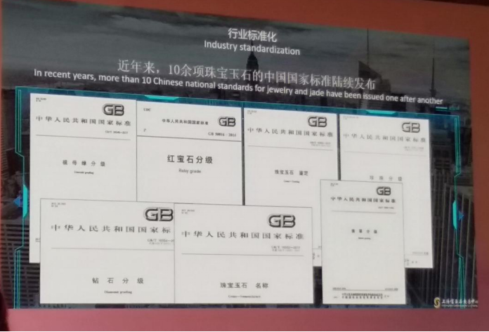 上海寶玉石交易中心執(zhí)行副總裁陳昱在演講中贊許NGTC珠寶研制的系列珠寶玉石國(guó)家標(biāo)準(zhǔn)對(duì)行業(yè)標(biāo)準(zhǔn)化的推動(dòng)起到了重要的作用
