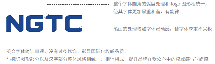 不同點(diǎn):優(yōu)化前標(biāo)識的顏色是“中國紅”和“寶石藍(lán)”的結(jié)合,而優(yōu)化后標(biāo)識配色運(yùn)用了“穩(wěn)重藍(lán)+科技藍(lán)+活力紅”,穩(wěn)重藍(lán)代表NGTC莊嚴(yán)權(quán)威、穩(wěn)重公信、精準(zhǔn)嚴(yán)謹(jǐn);科技藍(lán)代表NGTC科技創(chuàng)新、與時(shí)俱進(jìn)、理智公平;活力紅代表NGTC積極向上、陽光快樂、活力熱情,彰顯了NGTC的科技權(quán)威性和不懈進(jìn)取的文化精神。
