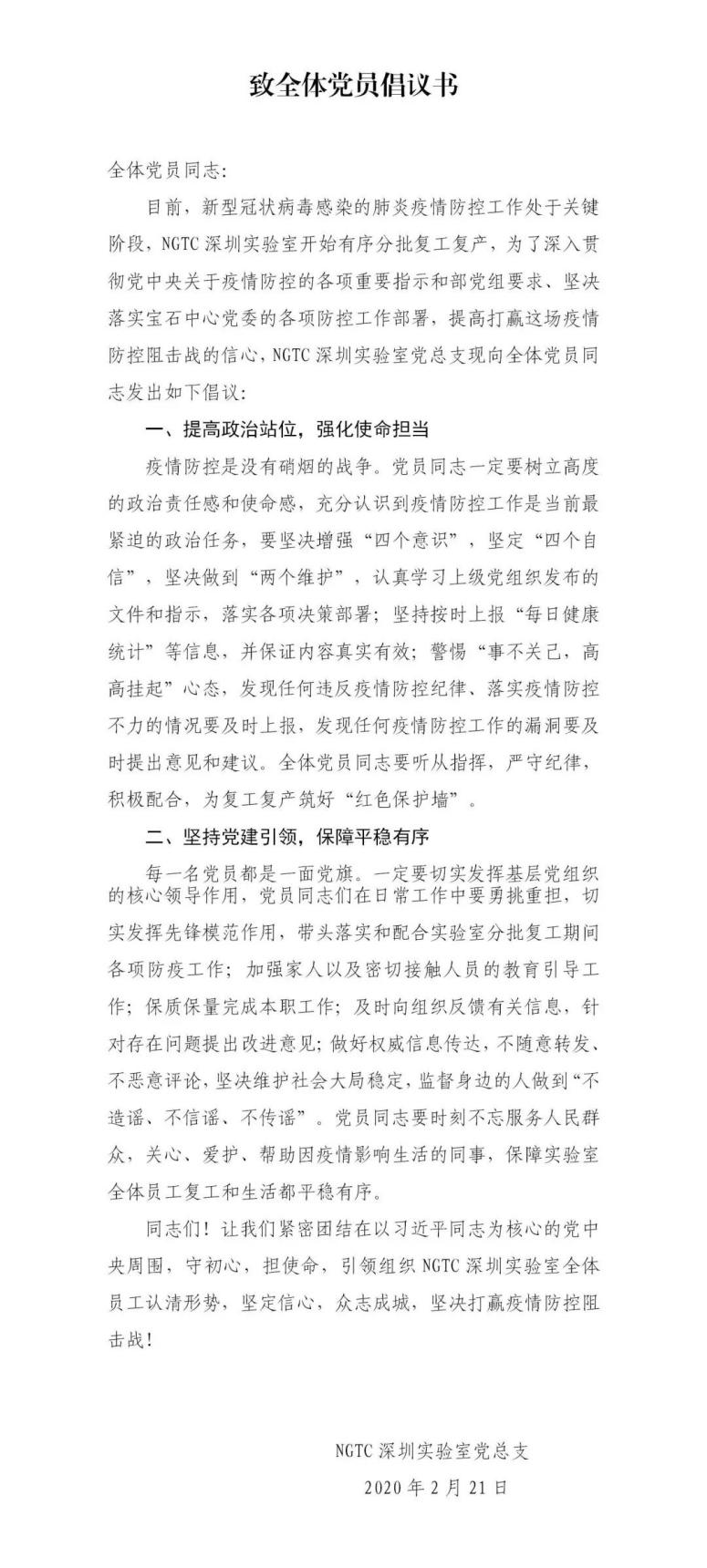 寶石中心(NGTC)深圳實驗室全體干部職工在寶石中心黨委的領(lǐng)導(dǎo)下,堅定打贏疫情防控阻擊戰(zhàn)的必勝信心。寶石中心黨委書記、主任葉志斌同志在得知寶石中心(NGTC)深圳實驗室防疫物資儲備存在少量缺口的情況后,第一時間調(diào)集物資提供給一線員工,強調(diào)疫情防控不能存在任何麻痹心理,要高度關(guān)注干部職工的生命安全和身體健康。寶石中心黨委副書記梁振杰同志,就寶石中心(NGTC)深圳實驗室安全防護(hù)和復(fù)工復(fù)產(chǎn)情況進(jìn)行了多次溝通了解,指導(dǎo)防控措施和復(fù)工復(fù)產(chǎn)要求的有效落實。