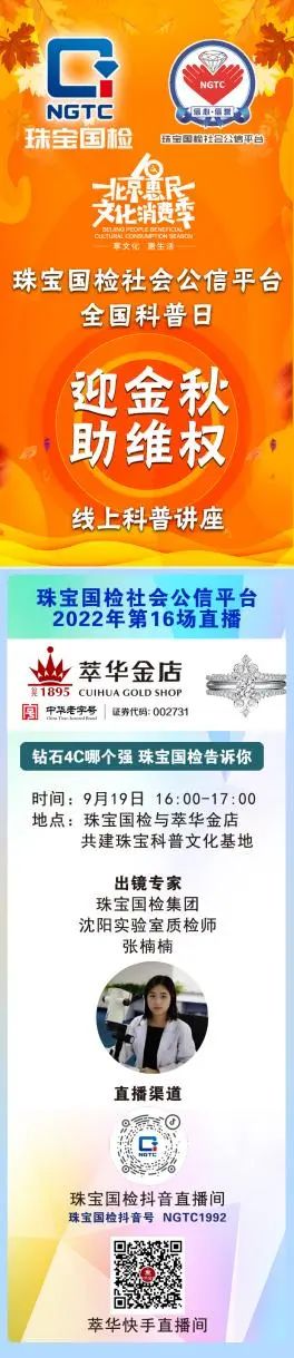 ?【2022珠寶國檢社會公信平臺系列科普直播十六】迎金秋 助維權(quán)