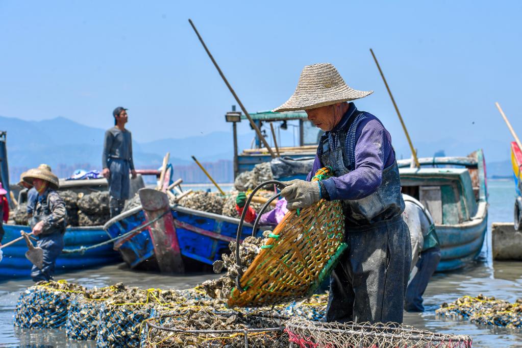 福建省羅源縣松山鎮(zhèn)北山村養(yǎng)殖戶在收獲海蠣(資料圖片)。新華社發(fā)
