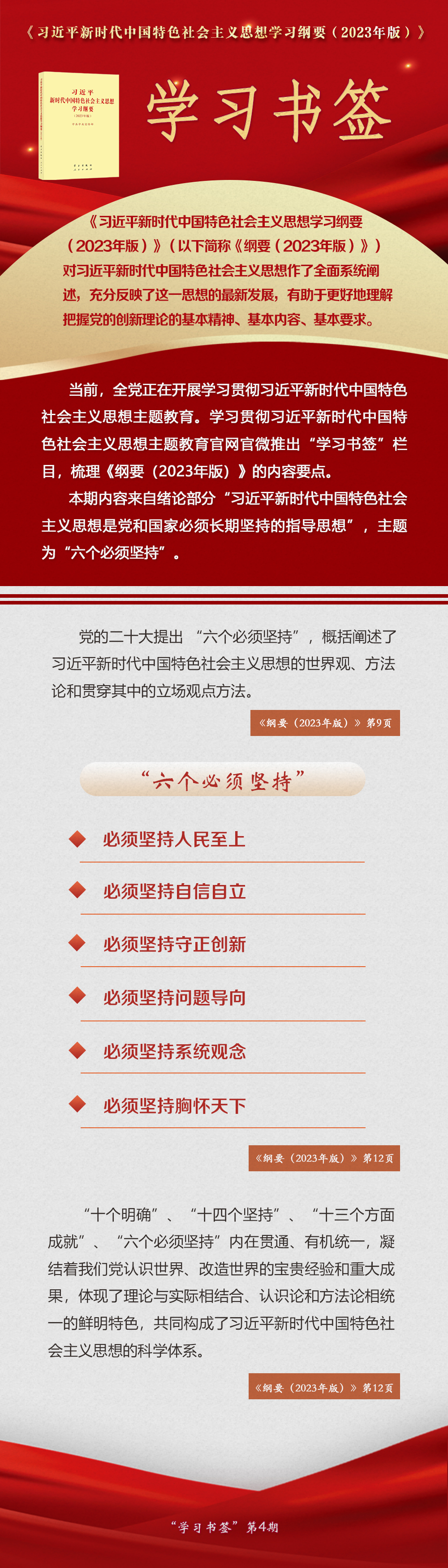 《習(xí)近平新時代中國特色社會主義思想學(xué)習(xí)綱要(2023年版)》 學(xué)習(xí)書簽丨“六個必須堅持”