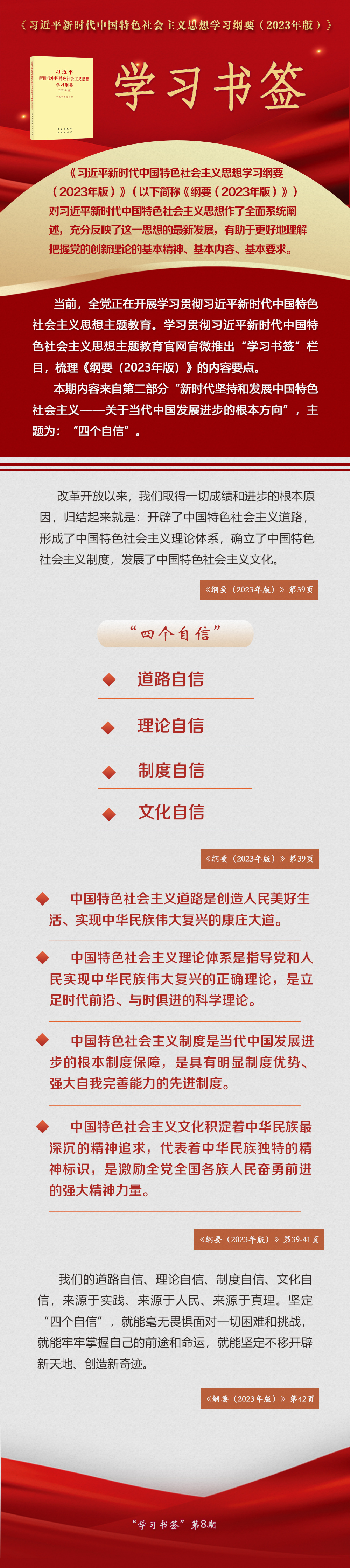 《習(xí)近平新時(shí)代中國特色社會(huì)主義思想學(xué)習(xí)綱要(2023年版)》 學(xué)習(xí)書簽丨“四個(gè)自信”
