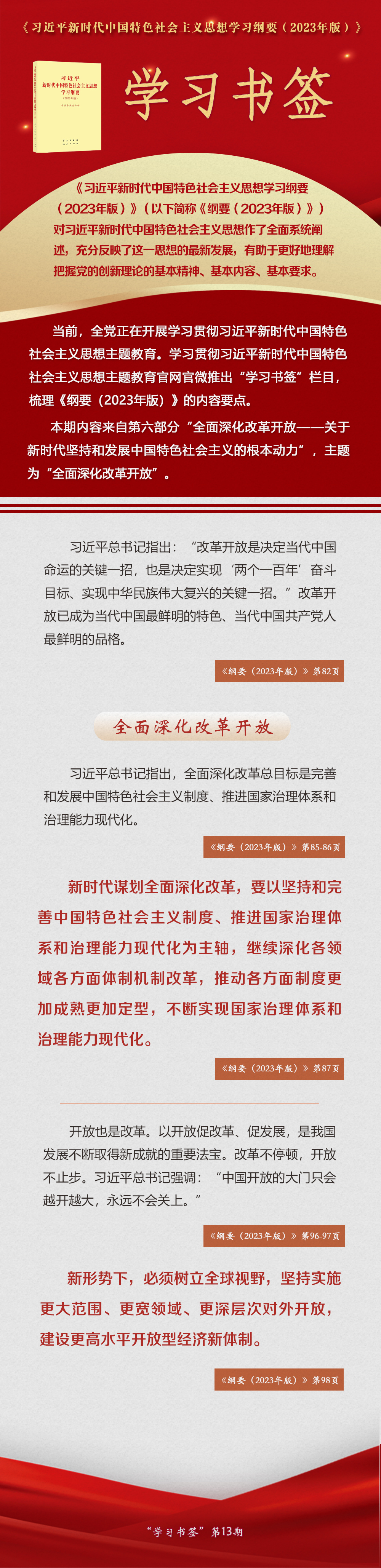 《習近平新時代中國特色社會主義思想學習綱要(2023年版)》 學習書簽丨全面深化改革開放