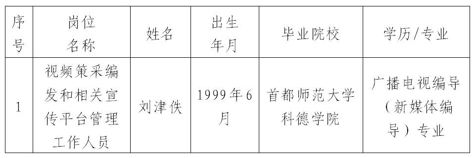 按照自然資源部珠寶玉石首飾管理中心招聘工作方案要求,經(jīng)過發(fā)布招聘公告、資格審查、面試、體檢、查閱人事檔案等程序,經(jīng)黨委會議研究,擬聘用劉津佚同志為宣傳推廣部工作人員,現(xiàn)予以公示。