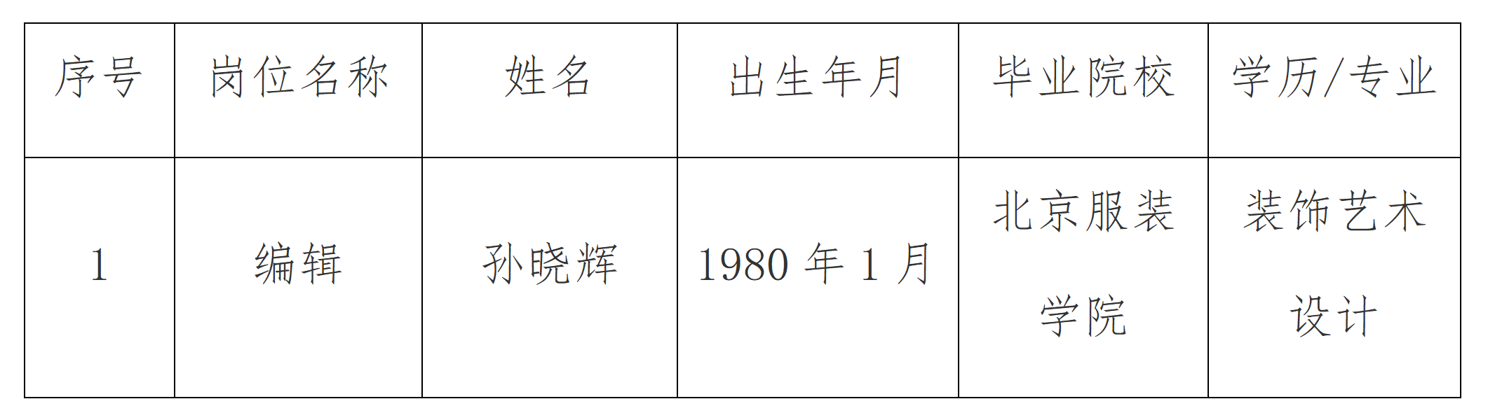 按照珠寶玉石首飾國檢集團(tuán)北京文化有限公司(原北京國臻文化傳播有限公司)招聘工作方案要求,經(jīng)過發(fā)布招聘公告、資格審查、面試、體檢等程序,經(jīng)研究,擬聘用孫曉輝同志為公司工作人員,現(xiàn)予以公示。