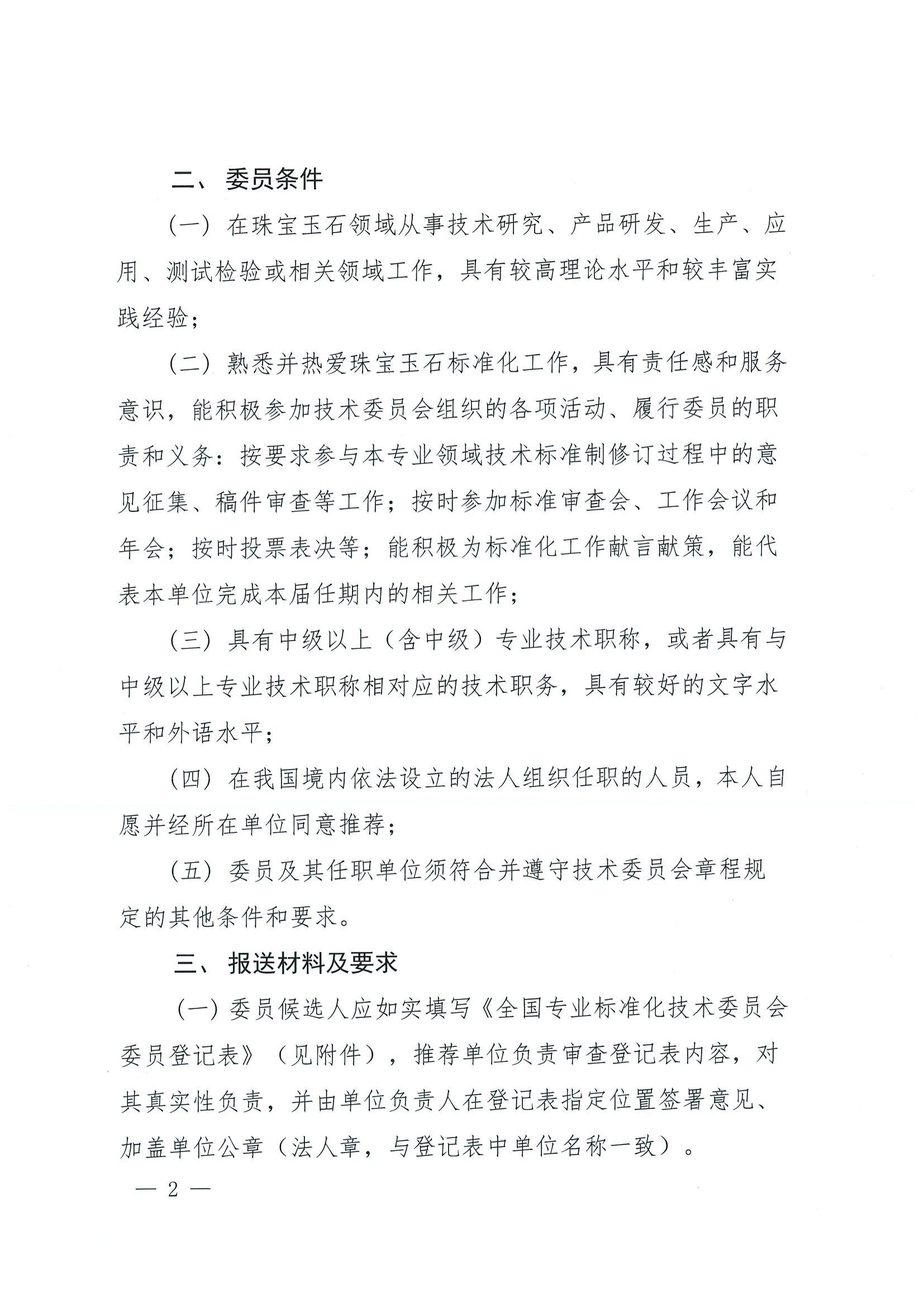 關(guān)于全國珠寶玉石標(biāo)準(zhǔn)化技術(shù)委員會(huì)換屆及征集委員的通知