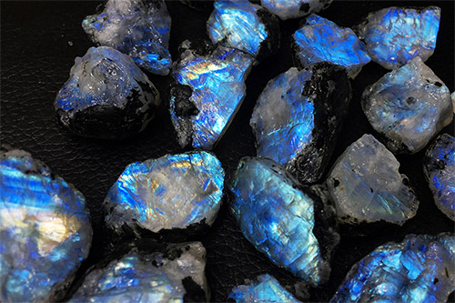 月光石是長石寶石家族中的一種,長石族礦物產(chǎn)出于各類成因的巖石中,它大約占地殼重量的50%,是一種重要的造巖礦物。長石的品種繁多,在自然界中廣泛存在。凡是色澤艷麗、透明度高、無裂紋、塊度較大均可用作寶石,部分長石寶石還具有特殊光學效應。月光石便是具有月光效應的長石寶石,其主要礦物成分為正長石和鈉長石兩種成分層狀交互的礦物。通常情況下,它呈無色至白色,還有紅棕色、綠色、暗褐色,透明或半透明,常見藍色、無色或黃色暈彩,具有特征的月光效應。