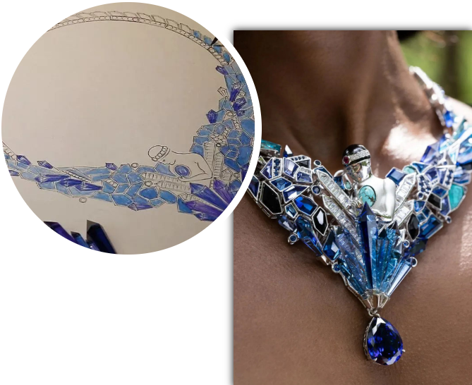作為具有環(huán)保理念的珠寶品牌,高納仕(GAONAS)的珠寶設(shè)計(jì)制作不拘泥于材料,天然礦石不是必選項(xiàng),人工寶石亦能被打造出媲美天然寶石的視覺效果。高納仕(GAONAS)提出“環(huán)保與美麗共存”的口號(hào),希望通過此件作品呼吁大家更好地保護(hù)自然生態(tài)和不可再生資源,讓每一位自信的女性都能夠?qū)崿F(xiàn)珠寶自由。