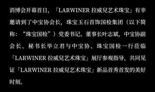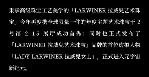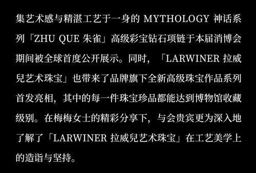 LARWINER拉威兒藝術(shù)珠寶再度驚艷亮相消博會LARWINER拉威兒藝術(shù)珠寶再度驚艷亮相消博會