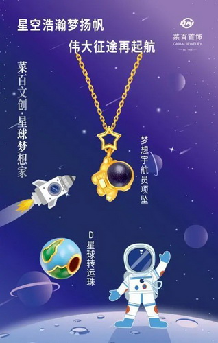 本次合作是一次“文化與科技領(lǐng)域的絢麗碰撞”,也是繼上屆服貿(mào)會菜百股份攜手世界黃金協(xié)會簽約發(fā)布“菜百傳世”子品牌后廣開新局的又一舉措。三方以“菜百首飾”“中國火箭”“壹玖文創(chuàng)”聯(lián)名合作的方式,結(jié)合菜百股份在黃金珠寶領(lǐng)域的專業(yè)研發(fā)能力,讓航天成果與科技水平通過貴金屬文創(chuàng)產(chǎn)品這一載體得到了很好的呈現(xiàn),讓更多的人關(guān)注支持中國航天事業(yè)。