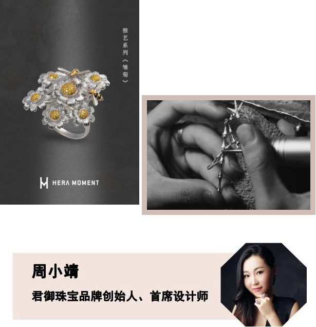 周小靖,曾任周大福香港“Loupe”駐場設計師。原創(chuàng)品牌“君御”秉承“君子之風,以御未來”的發(fā)展理念,遵循為寶石“量體裁衣”的黃金法則,襯托和彰顯寶石的天然之美。
